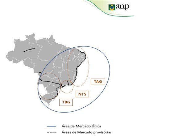 Em sua esfera geográfica, até a completa integração entre as diferentes áreas de transportes, sugere-se a segmentação do mercado conforme cada uma das áreas de capacidades de transporte, uma vez que a sua contratação (no formato de entrada e saída) é necessária para a atuação do agente em cada mercado, conforme assim delimitado pela ANP: