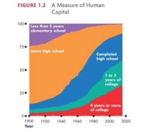 O Capital humano acompanha essa estrutura produtiva. Para o padrão americano, temos a seguinte estimativa :
