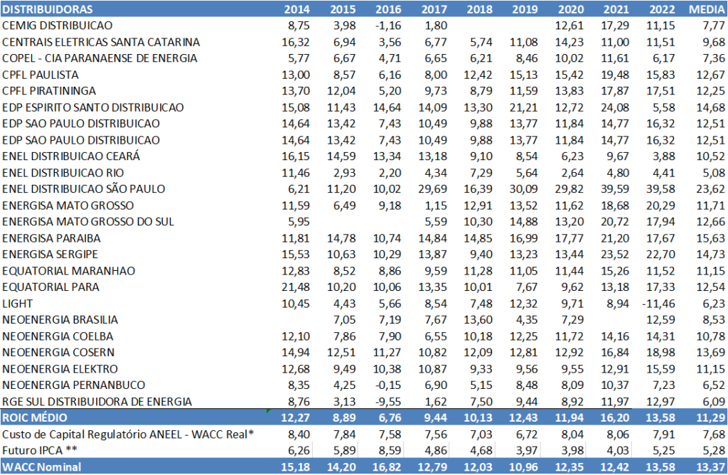 Tabela 1: A Remuneração do Capital Investido no Setor de Distribuição Elétrica (ROIC)