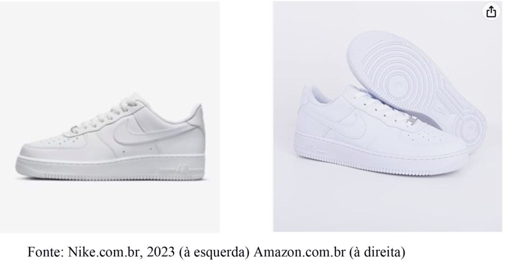 Figura 1 – Tênis Nike Air Force 1 original, vendido pelo site da Nike por R$ 799,99 (à esquerda)