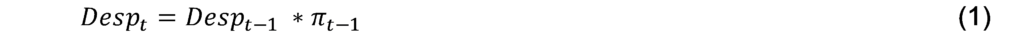 Onde Desp t é a despesa primária no período t, Desp t-1 é a despesa primária no período imediatamente anterior e t-1 é a inflação do período imediatamente anterior.