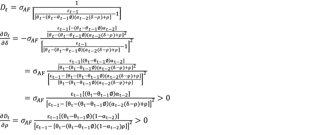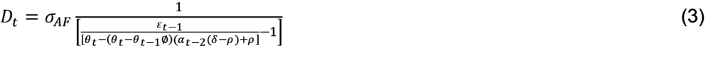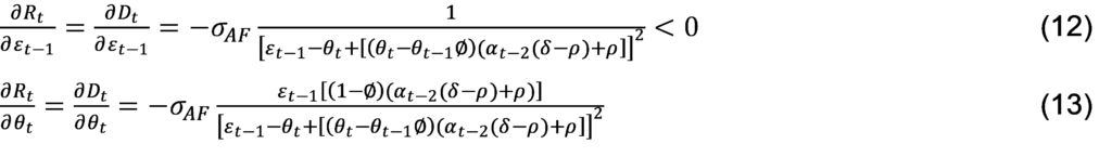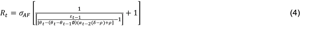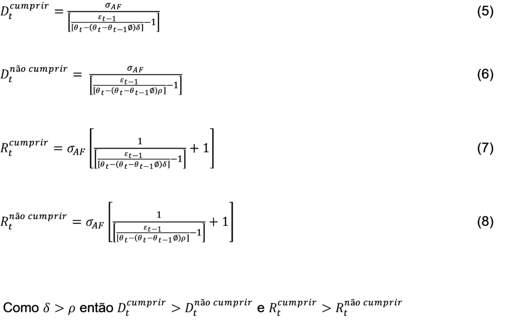 O cumprimento da meta implica em α_t-2=1 e o seu não cumprimento implica em α_t-2=0.