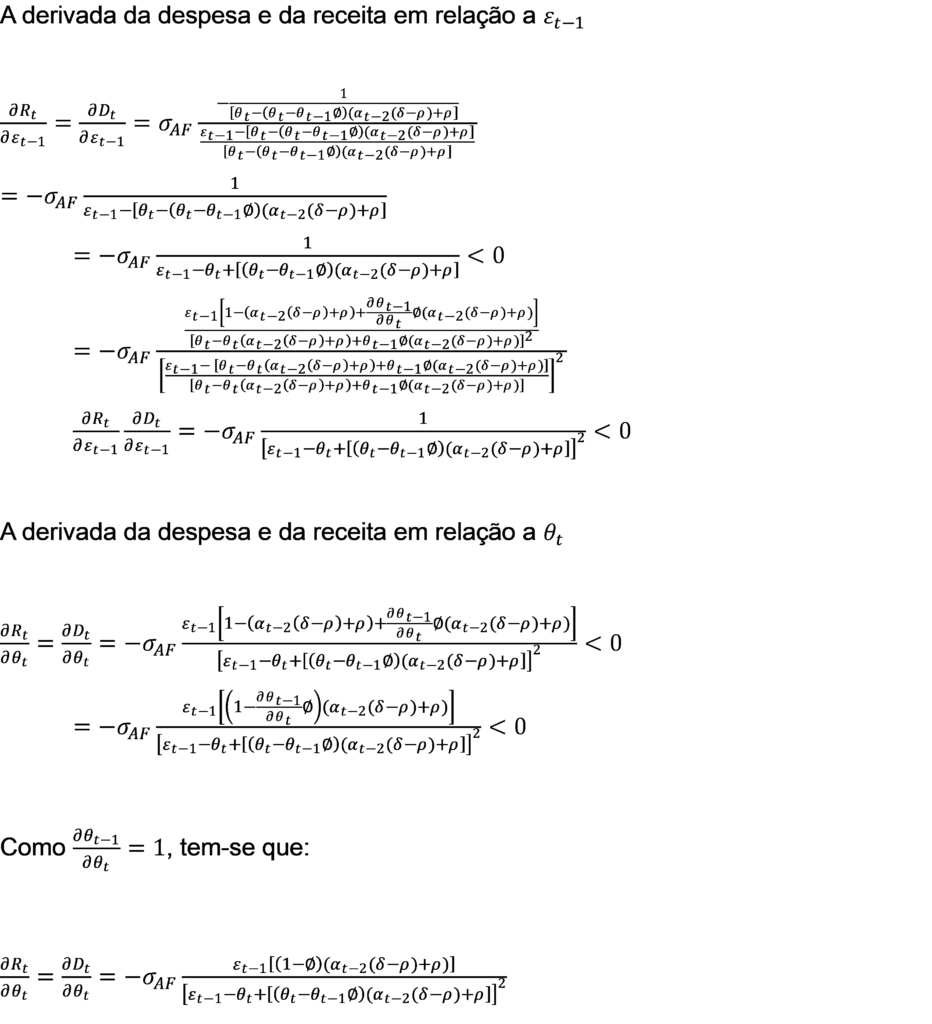 Onde εt-1 é a elasticidade-PIB da despesa no período t-1, ϴt-1 é a elasticidade-PIB da receita em t-1 e ϴt é a elasticidade-PIB da receita em t.