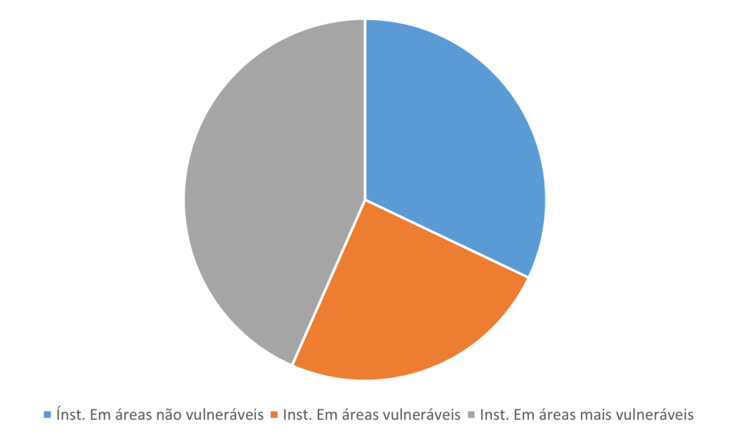 Utilizar-se-á como corpus para a análise nesta seção, instituições filantrópicas que se dedicam à educação infantil e alunos matriculados nessas instituições. As Regiões Administrativas foram aqui definidas como áreas não vulneráveis, áreas vulneráveis e áreas mais vulneráveis, segundo dados referentes à renda per capta de seus moradores (Wikipédia, 2023).