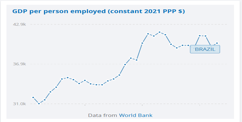 Embora a taxa de crescimento do país não seja significativamente elevada nas últimas décadas, o PIB por pessoa ocupada cresceu consideravelmente entre 1991 e 2023 (dados do World Bank), mostrando que há margem para discussão sobre a redução da jornada de trabalho agregada. Considerando que essa evolução ocorreu enquanto a média de horas trabalhadas gira em torno das quarenta horas semanais, parece lógico concluir que os ganhos dos trabalhadores também podem ser alocados via redução da jornada de trabalho.
