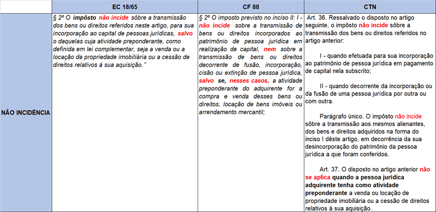 Ou seja, o ordenamento constitucional estabelecia que nos casos de integralização não incidia o imposto, salvo, se a pessoa jurídica possuísse atividade preponderante de transações imobiliárias.