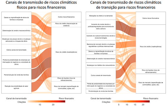 A recente conclusão de pesquisa especializada em estabilidade financeira relacionada a fatores climáticos revela que o risco de crédito permanece como principal canal de transmissão de choques climáticos para o sistema financeiro. Para riscos físicos, os canais mais relevantes incluem danos a ativos de famílias e empresas, interrupção de atividades produtivas e impactos na produtividade agrícola. Já para riscos de transição, destacam-se aumentos de custos regulatórios e barreiras comerciais decorrentes de políticas internacionais de baixo carbono[5].